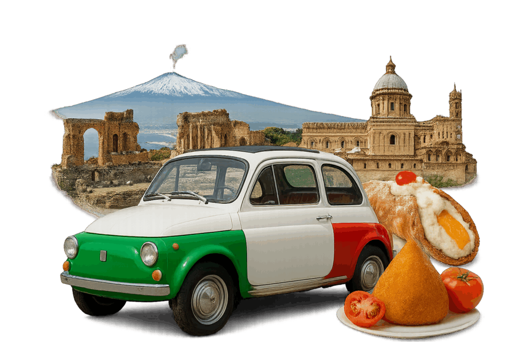 Cu mașinile noastre moderne și confortabile – de la cele economice la cele de familie – poți vizita fără griji atracții spectaculoase precum Etna, Taormina, Siracuza, Palermo și plajele însorite din sudul Siciliei.